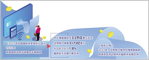 展望2022年,《报告》认为,全球经济增长将有所放缓,主要发达经济体货币政策继续调整,外部环境存在较多不稳定不确定因素。但我国经济运行将保持在合理区间,金融市场改革开放稳步推进,外汇市场成熟度不断提升,有助于我国国际收支保持基本平衡,预计经常账户维持合理顺差格局,跨境资本流动保持平稳有序发展态势。